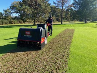 L’entretien particulier des greens est nécessaire pour stimuler la pousse, augmenter la densité du gazon et favoriser le développement des racines.