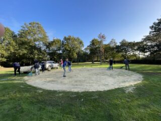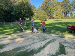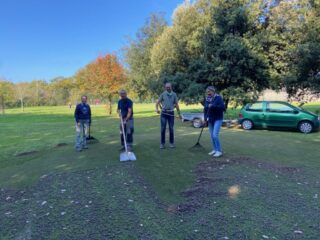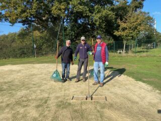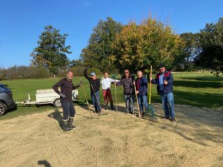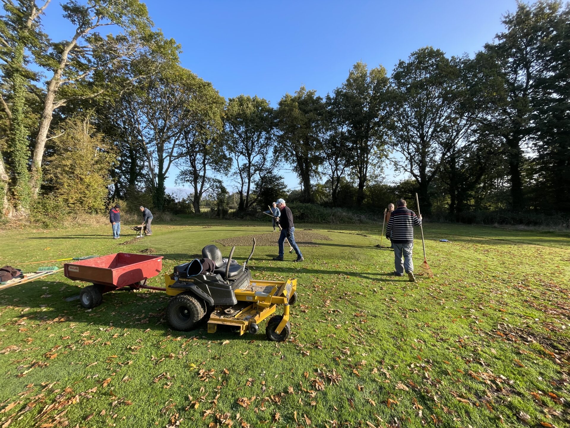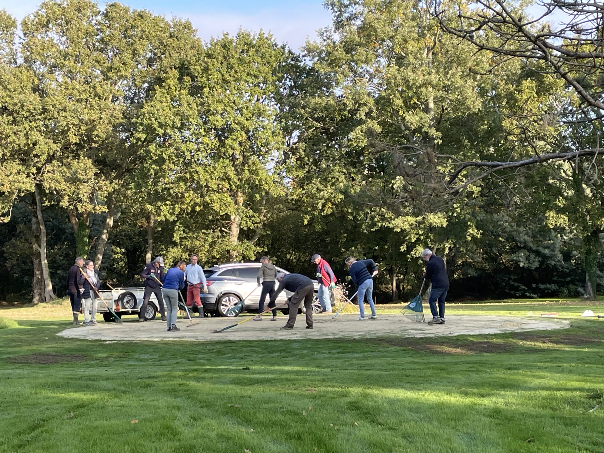 Après le passage avec sa machine de Ludovic Garcia, le greenkeeper de Guérande, une équipe rodée de bénévoles très motivés a évacué les carottes et sablé les 9 greens de notre parcours, ce mercredi 15 octobre 2025.